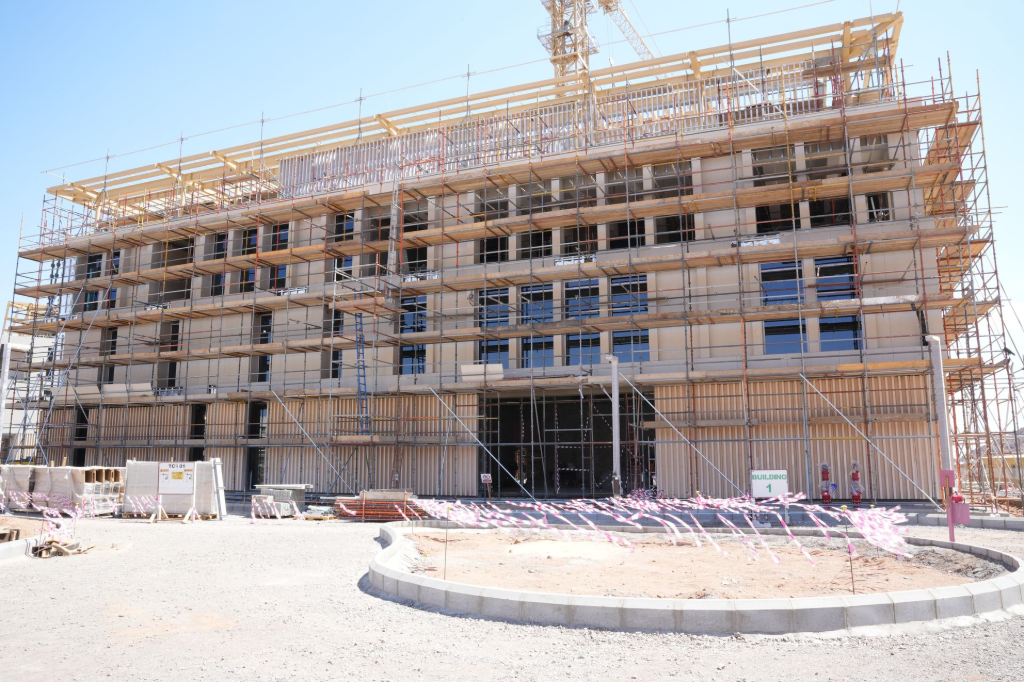 Working at height in an open environment introduced challenges related to lifting, alignment, and wind exposure. Controlled lifting procedures, calibrated spacers, and strict setting-out verification were implemented to maintain consistent tolerances and uniform joint alignment across the façade. The result is a precise, stable, and architecturally coherent GRC system executed through a methodical, solution-driven approach.